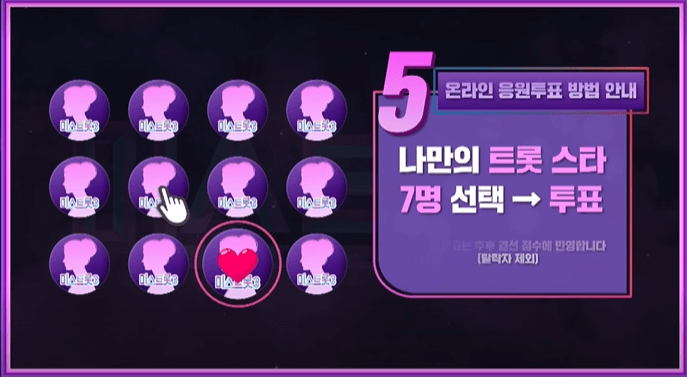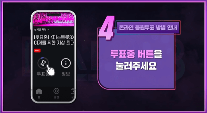 간단하게 응원하는 가수에게 투표해주면 끝. 어렵지 않으니 꼭 응원하는 가수에게 힘을 전해주시기 바랍니다.