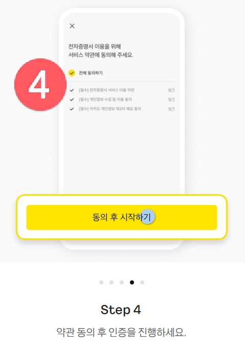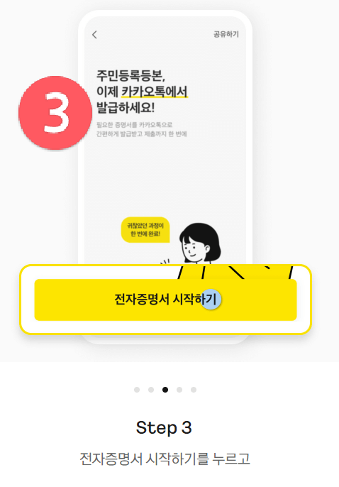 1. 카카오톡실행해서 지갑의 전자문서 탭에서 전자증명서 발급을 선택하세요