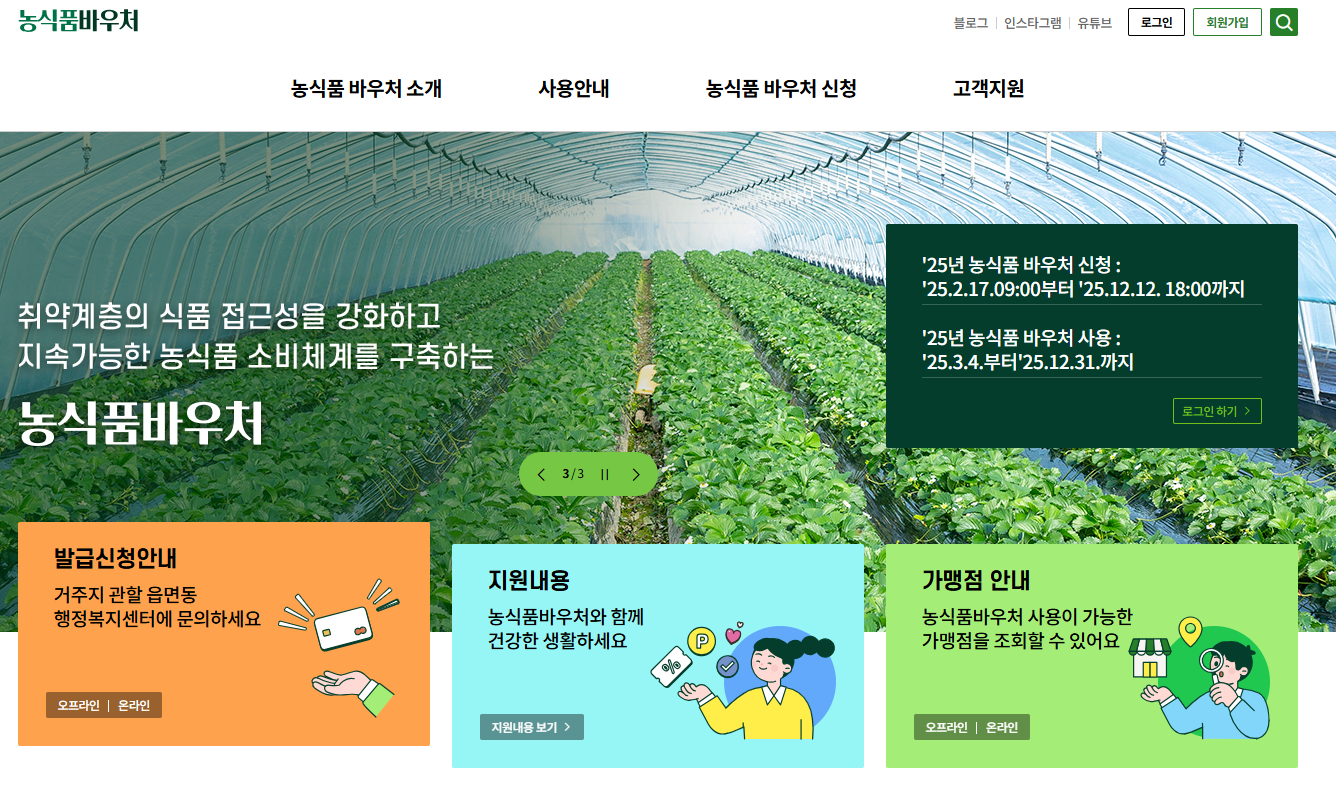 2025 농식품 바우처는 온라인과 오프라인 모두 신청 가능합니다.